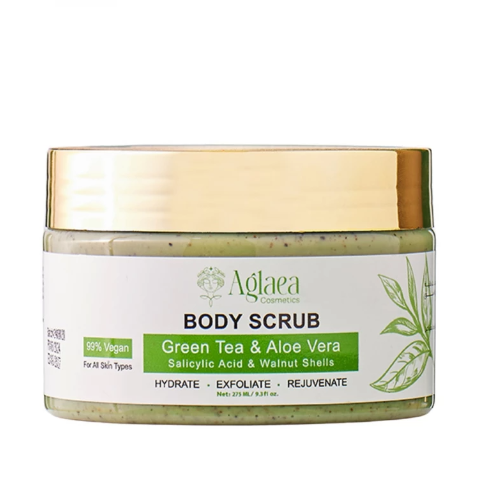 مقشر أجليا للجسم بالشاي الأخضر والالوفيرا - 275 مل مع قشور الجوز والساليسيليك اسيد
